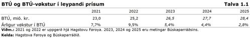 Búskaparvøksturin (BTÚ) er mettur at veksa við 5,4% í ár, meðan hann er mettur at veksa við 4,4% í 2024 og 2,8% í 2025.