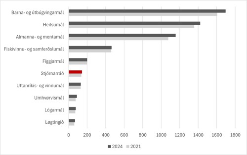 Mynd 1 Ársverk hjá landinum í 2021 og 2024