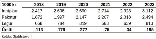 Kommunurnar hava gjørt nógvar íløgur seinastu árini sambært talvu 1, men sambært kommunufelagnum er lítið gjørt á eldraøkinum. Íløgur í eldraøkið skulu tryggja, at raksturin verður so effektivur sum møguligt hjá kommunum, tí eldrarøktin fer at økjast nógv komandi árini. Tað er tó líkt til, at tær flestu kommunurnar enn ikki hava lagt nakrar langtíðarætlanir fyri eldraøkið, hóast tað er alneyðugt.