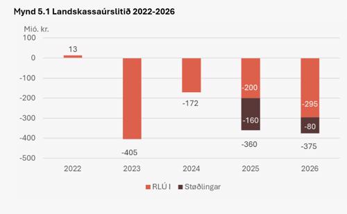 Viðm.: Landskassaúrslitið, vanligir postar. 2020-2024 er roknskapur, 2025 til 2026 eru metingar.