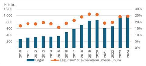 Mynd 1 Kommunalar løguútreiðslur 2010-2024