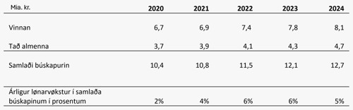 Talva 1 niðanfyri vísir, at vøksturin av útlendskari arbeiðsmegi var á sínum hægsta stigi í 2022 (24%). Í 2023 var vøksturin 10% og í 2024 2%. Tað er tí líkt til, at tilgongdin av útlendskum starvfólkum er hæsað av.